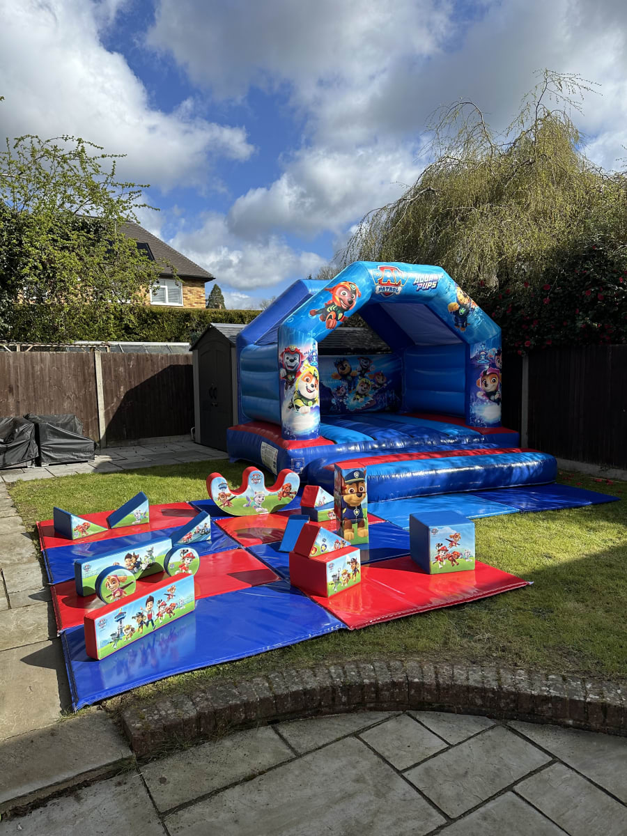 Bring Paw Patrol fun to your next event with our Paw Patrol Package. This party hire bundle includes a standard size Paw Patrol bouncy castle, eight red and blue safety mats, and themed softplay shapes. It's designed for easy setup, safe play, and eye-catching appeal. Ideal for birthdays, playdates, and community events across Buckinghamshire.