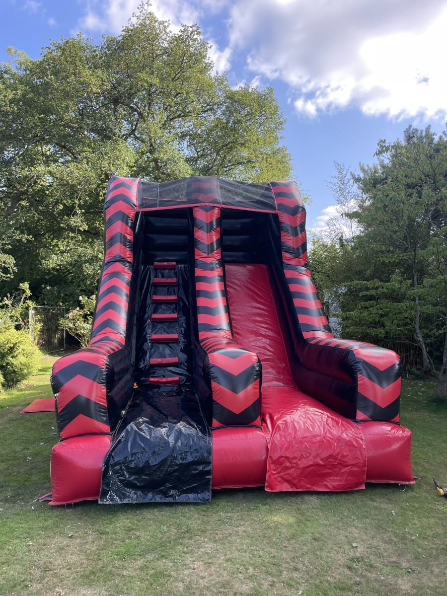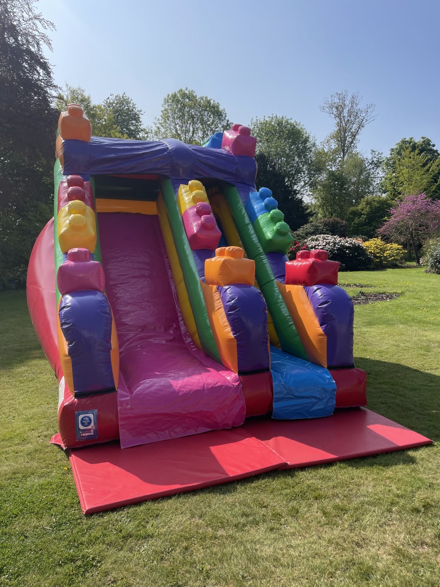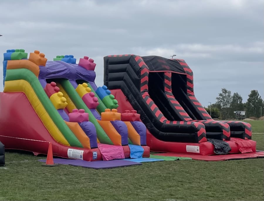 bouncy castle rental Double Slide Package in Amersham, Buckinghamshire and surrounding areas delivers two crowd‑pleasing slides for fast, exciting entertainment. This package features a bold red and black hyper slide and a building‑bricks platform slide. Perfect for kids’ parties, community events, school fetes, and family gatherings. Fast setup. Safe play. Big smiles.